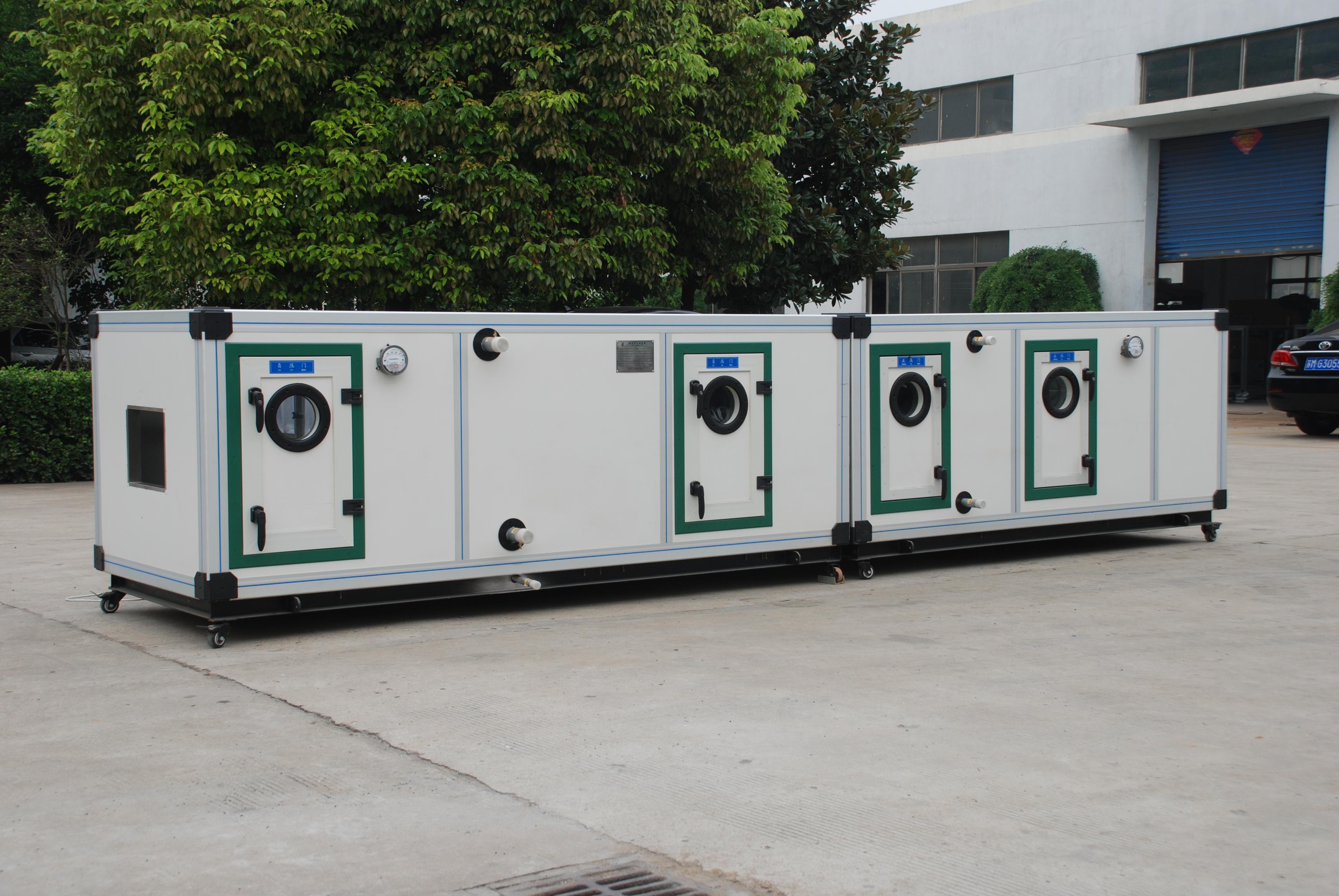组合式空调机组加湿段可配置干蒸汽加湿器,高压喷雾加湿器,湿膜加湿器,加湿效率高,节能。 各功能段采用更先进的工艺和优质的原材料,保证组合式空调机组的稳定性和使用效果。